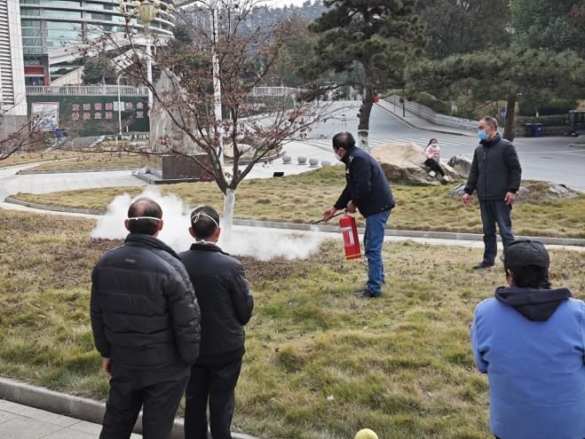 培训中,莫小波结合近期高校消防典型案例,围绕树立消防责任意识、清除消防安全隐患、初期火灾扑救、消防安全器材的使用、火灾应急疏散常识等内容进行了培训,并结合灭火器使用的“提拔握压”四字口诀,为大家示范了干粉灭火器和二氧化碳灭火器的使用要领。消防理论知识培训结束后,校保卫处组织参训人员按照如何开启灭火器,如何把握灭火器方向等要点进行了现场实操演练。