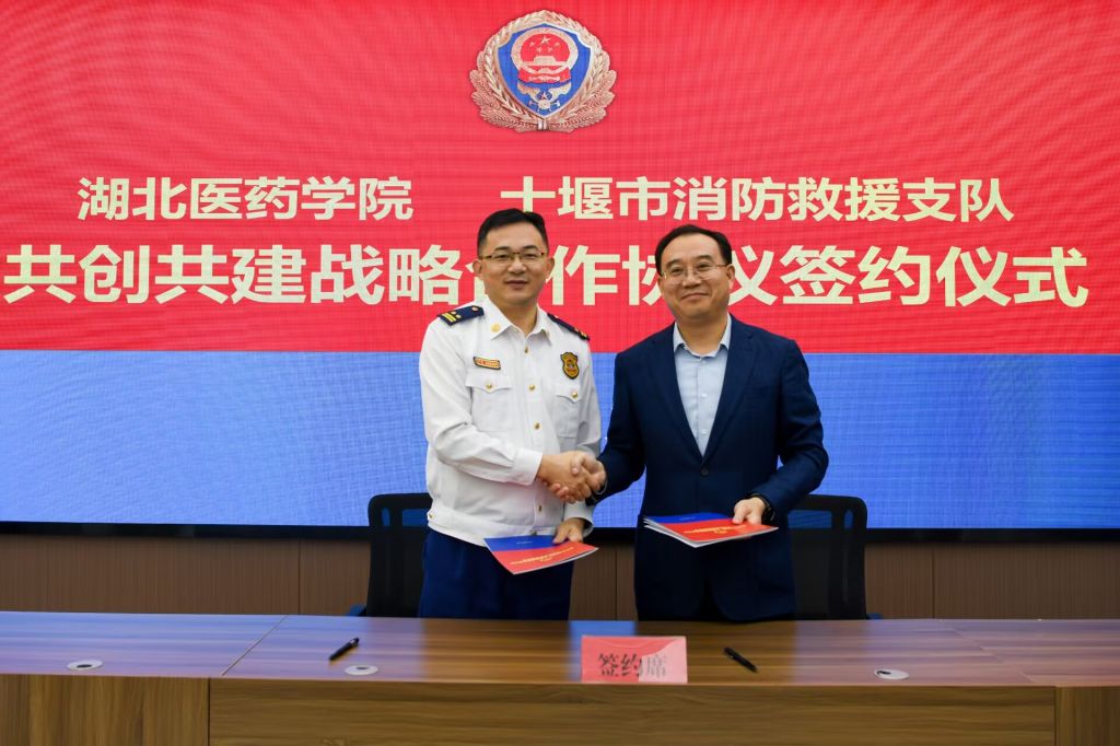 本网讯(通讯员 高航)9月30日,湖北医药学院与十堰市消防救援支队共创共建战略合作协议签订仪式在十堰市消防救援训练基地会议室举行。学校党委副书记、校长王云甫,学校党委常委、组织部长张海蛟,十堰市消防救援支队政治委员李支龙、支队长韩波出席仪式。学院各相关职能部门及消防救援支队各科室负责人参加仪式。