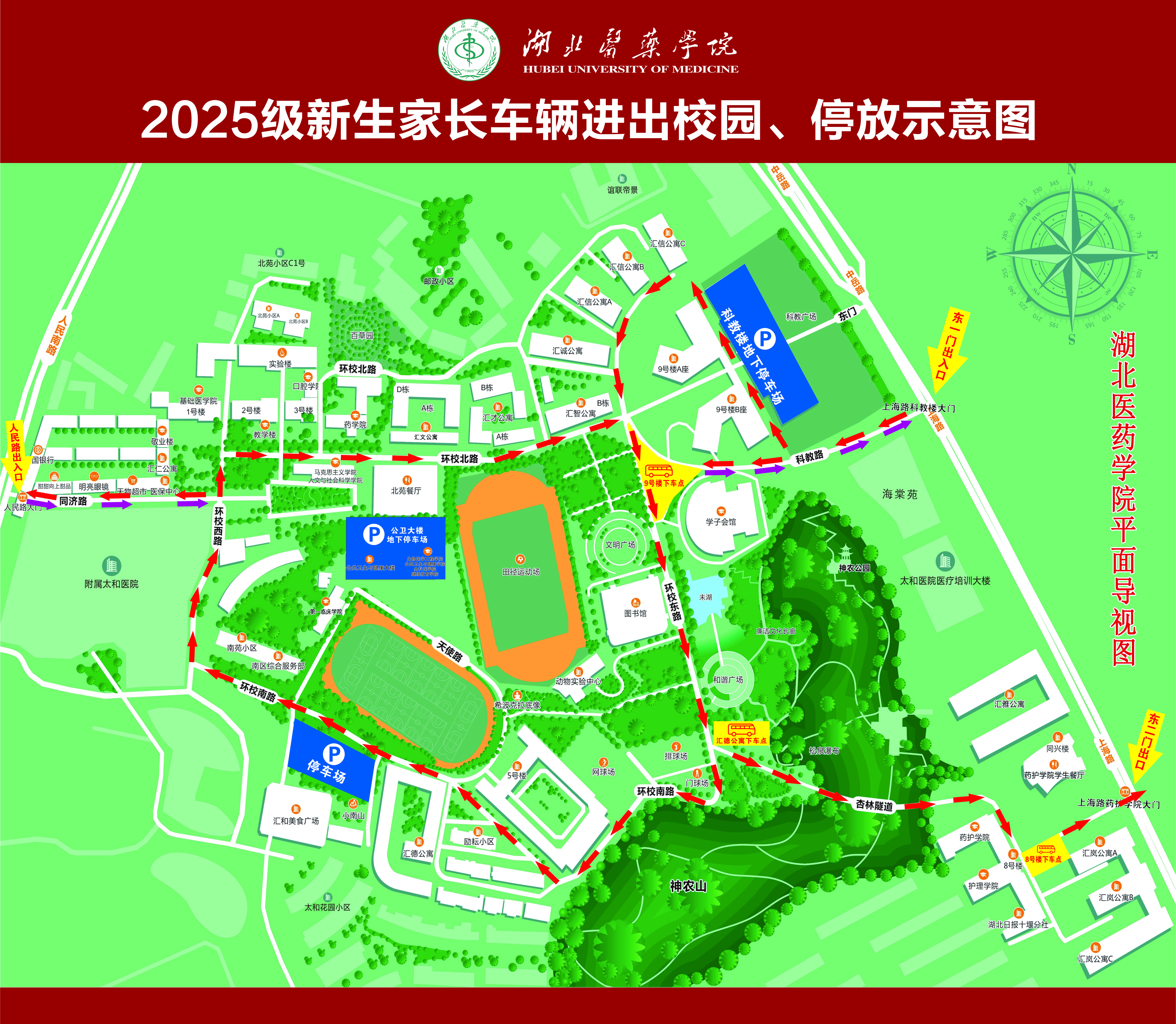 湖北医药学院迎新工作将于2025年9月3日至5日组织实施,届时预估有2000辆次车辆在校内通行。为确保迎新期间校园交通顺畅,结合以往迎新工作经验,经实地踏勘,现提出以下车辆通行与管制方案,请各位知悉并按要求执行。