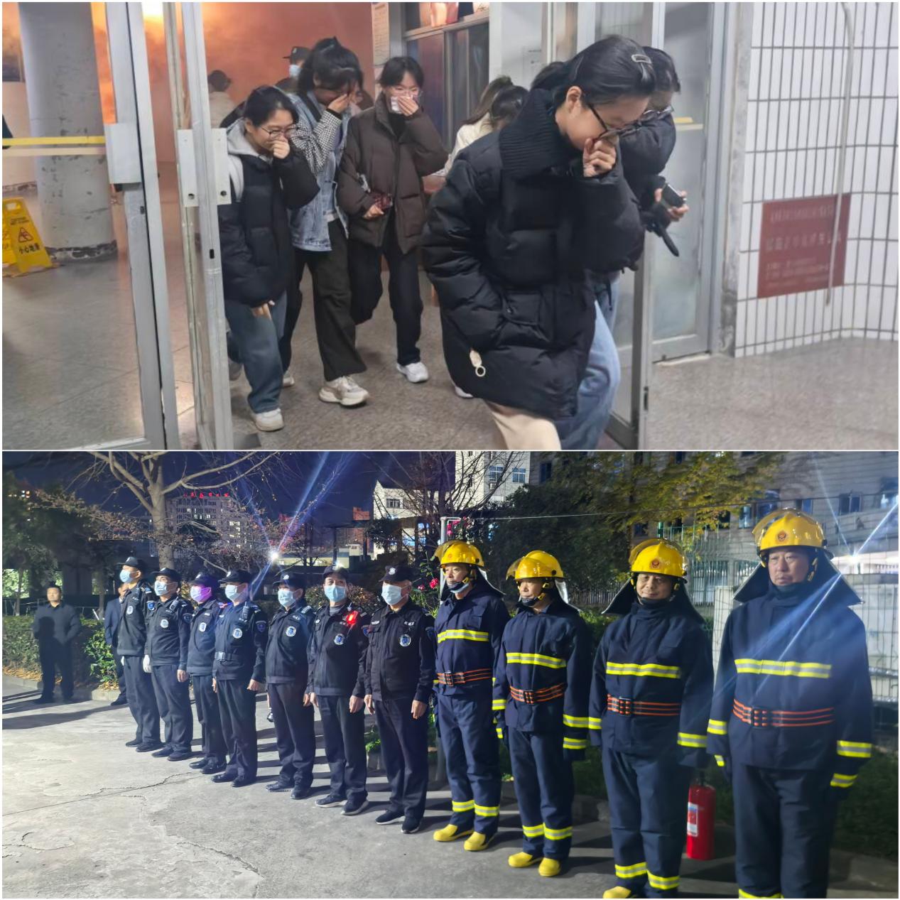 为检验学习成效,11月19日,学校举办消防安全知识竞赛,各学院学生积极报名、踊跃参赛,以赛促学、以赛促练,进一步夯实消防安全知识储备,深化对消防安全重要性的认知。同日夜间,一场模拟真实的夜间疏散逃生演练在汇德公寓AB栋紧张有序地展开。随着消防警报声响起,演练现场模拟烟雾弥漫,学生在各楼层工作人员的引导下,严格按照预定疏散路线,捂鼻低姿、快速有序撤离至指定集结区域。整场演练过程组织严密、响应迅速、切实提升师生在紧急情况下的心理素质和实战逃生能力。