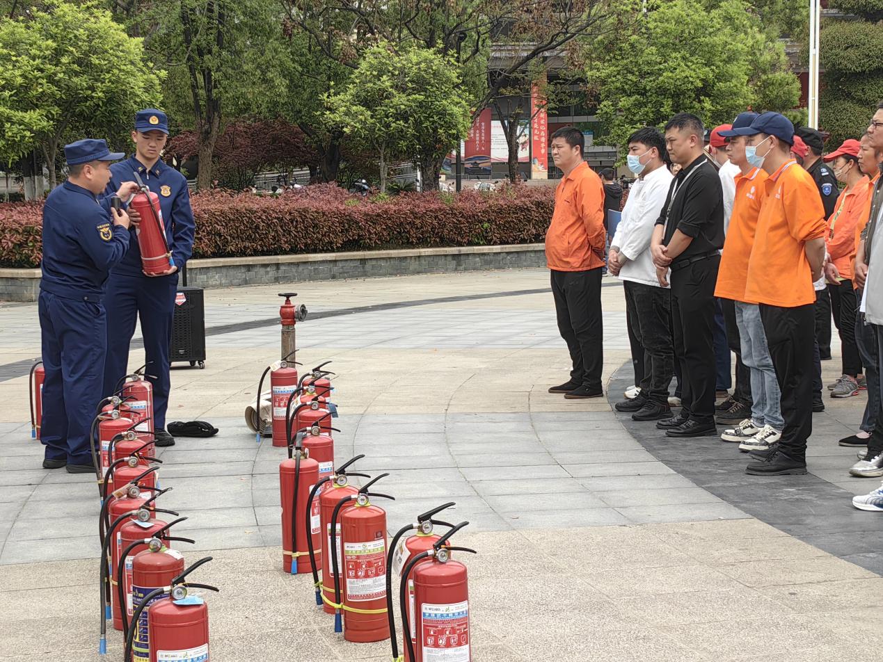 在模拟油盆灭火环节,消防专业干部现场演示干粉灭火器“提、拔、握、压”的操作步骤,参训人员分批上前进行实操灭火,及时纠正不规范动作,确保每位参训人员都能熟练掌握灭火器材使用方法。