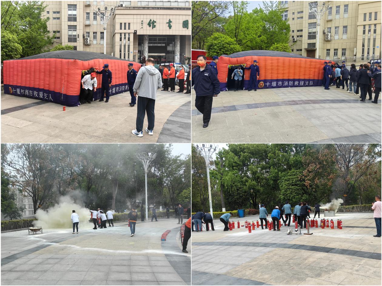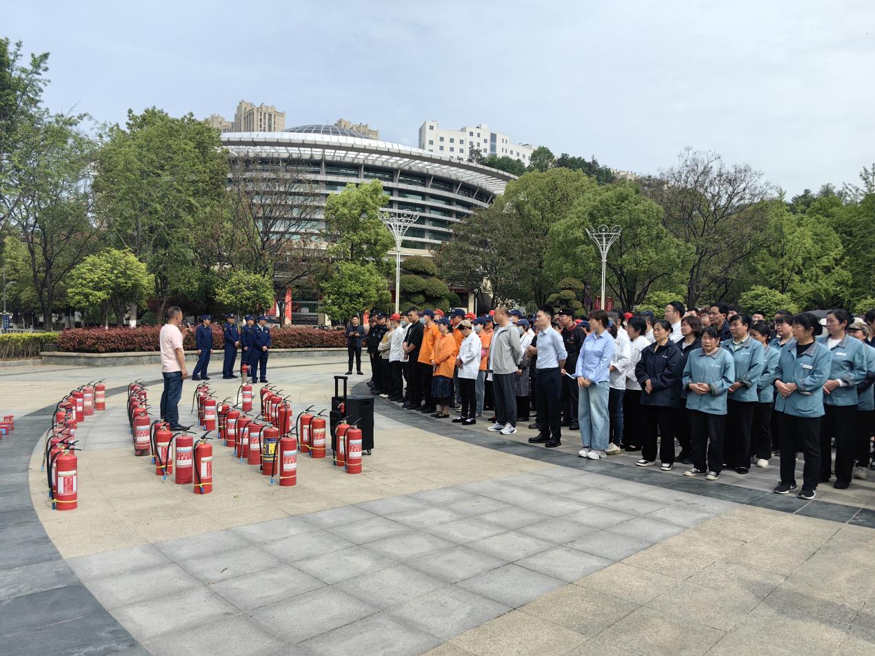 本网讯(通讯员 陈理炜)在全民国家安全教育日来临之际,为进一步加强校园消防安全工作,提升保安、物业、食堂、宿管及校内商户从业人员的消防安全意识与应急处置能力,4月10日下午,学校保卫处特邀请十堰市消防救援支队特勤消防救援站,携专业演练装备,在图书馆前组织消防应急演练活动。校内保安队员、物业服务人员、食堂工作人员及商户代表约400余人参加演练。